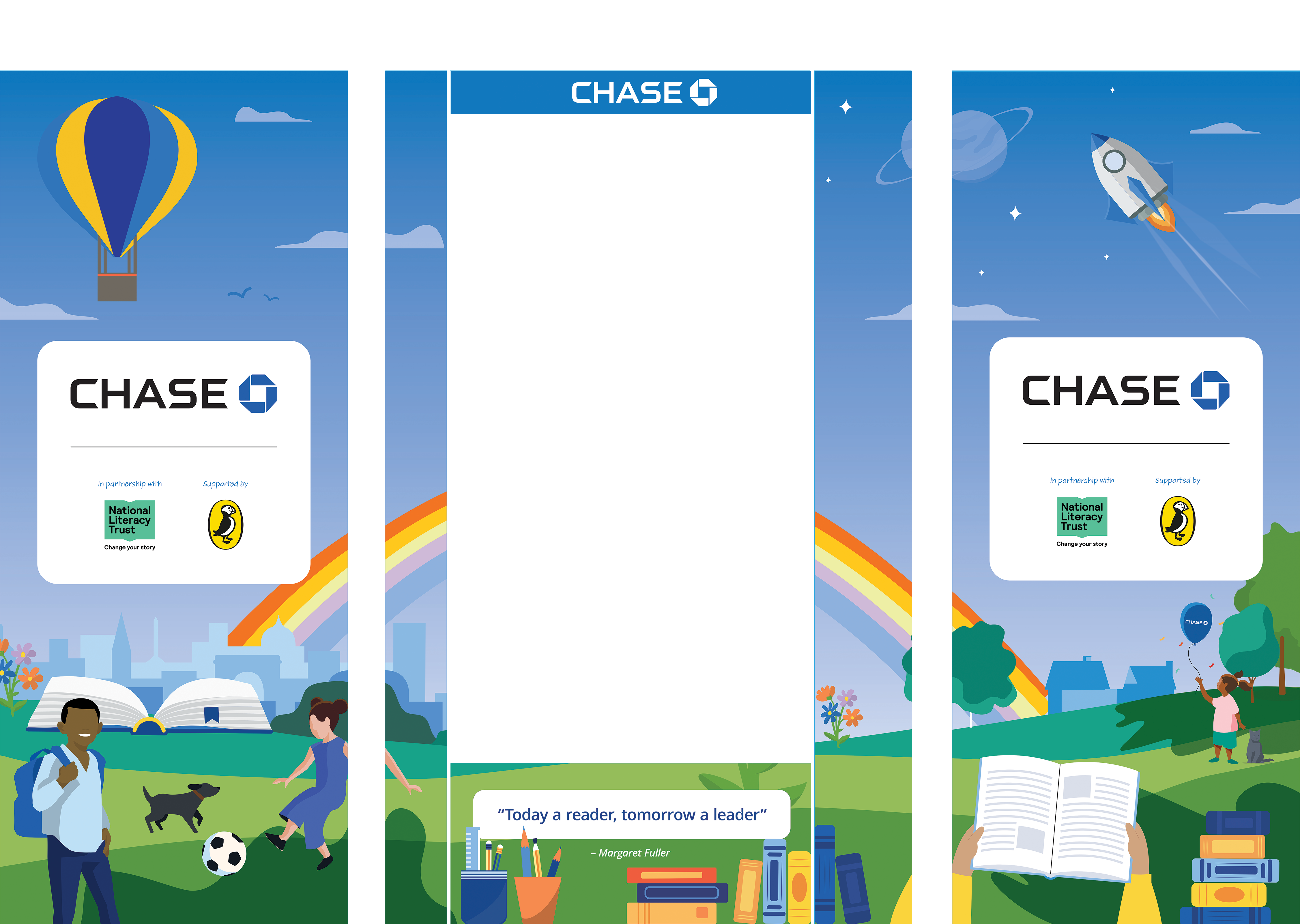 As part of this initiative, I had the exciting opportunity to design a book vending machine wrap for schools. There was also a challenge of balancing the visibility of the Chase brand while also being fun enough for children and suitable for the school environment.